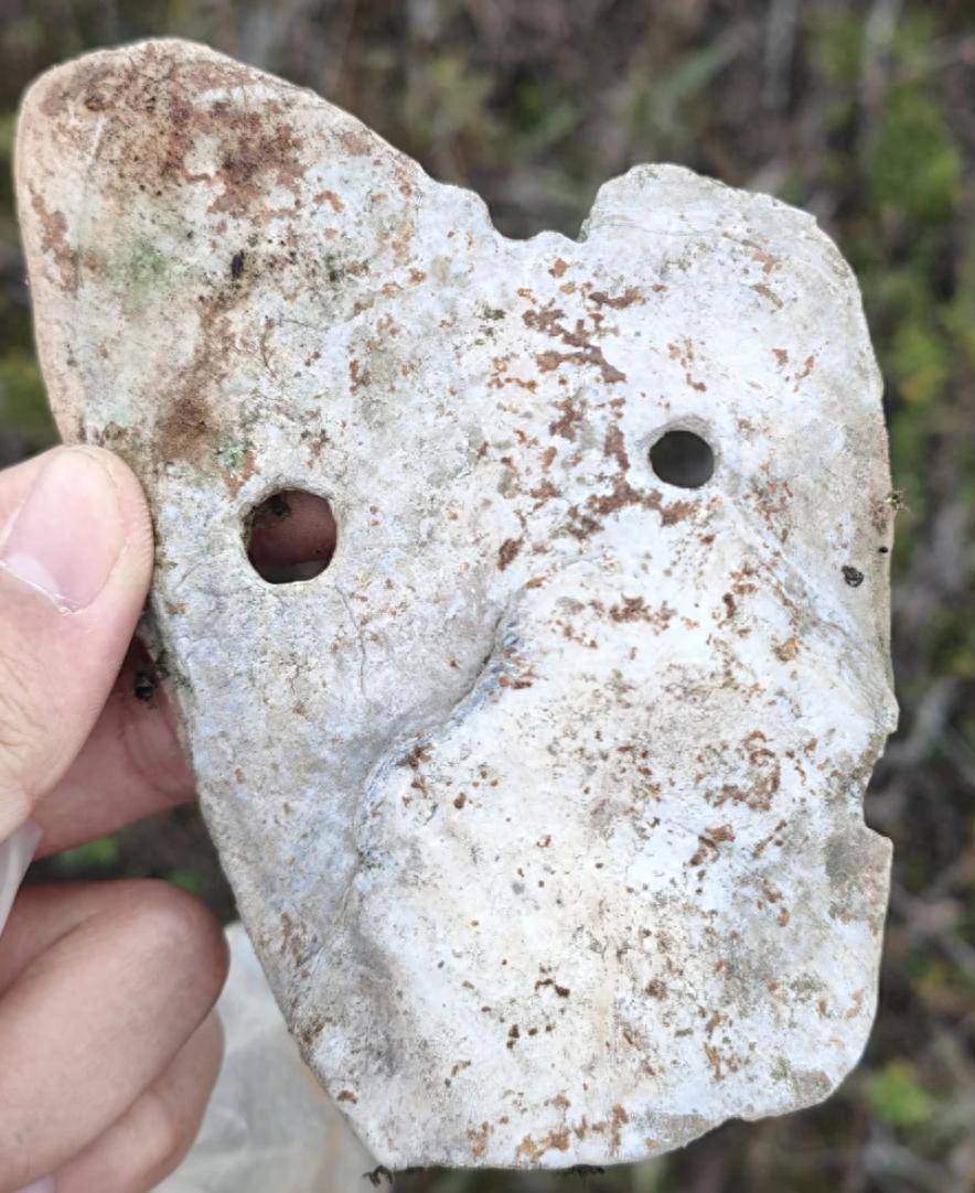 记者通过私信联系发帖网友。他告诉记者,这是偶然发现的,“就在草地上,当时看到两个孔,觉得眼熟,回去翻阅资料一看,和昙石山文化时期的贝铲对得上。”