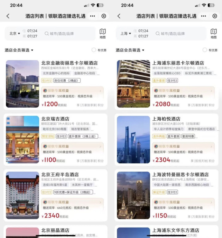 银联的权益很丰厚,这里面我用比较多的是臻选酒店权益,比如在不考虑会员保级的情况下,用银联酒店臻选礼遇性价比非常高,赠送双早,每次入住100美金消费额度,部分住3付2(具体要求看详情页),综合下来可以省不少钱。