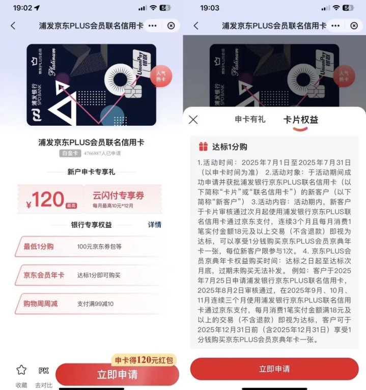 比如这张浦发京东plus会员联名信用卡就是典型的一鱼三吃。