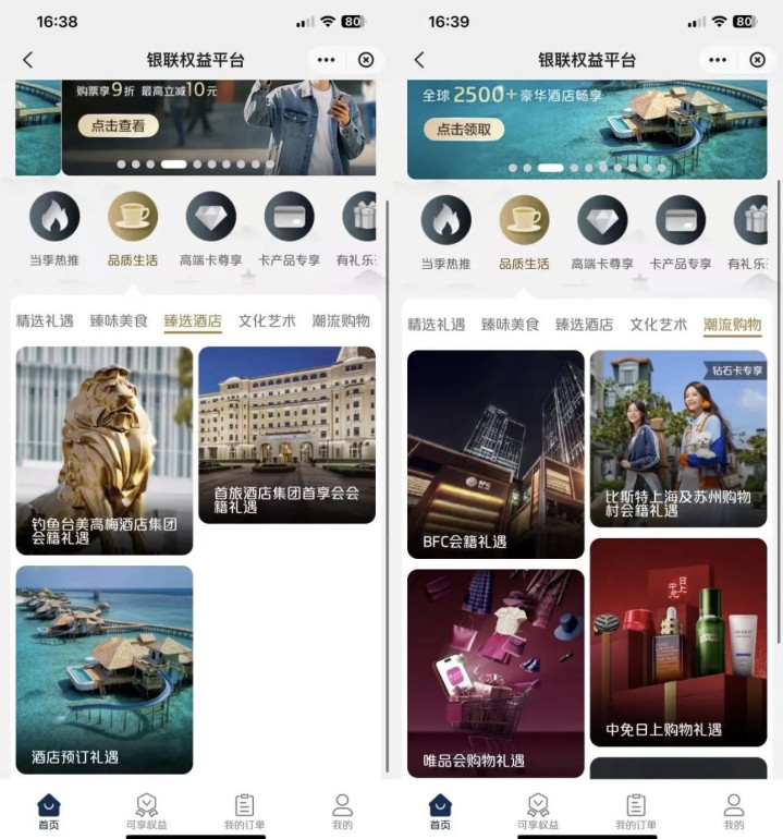 银联卡的权益亮点(白金起步)