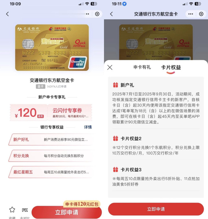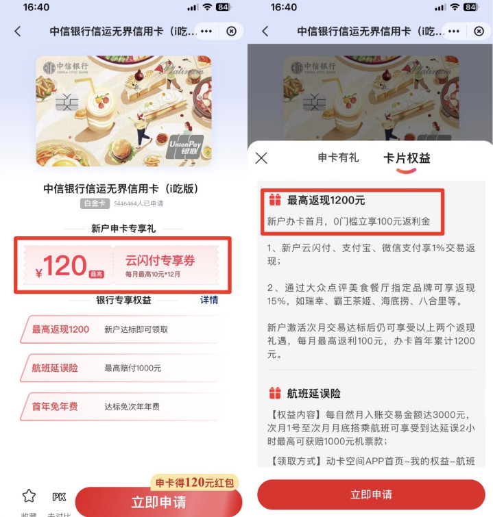 3、双倍快乐,120 元申卡礼,云闪付送给新用户专享 “见面礼”,银行卡本身的新户礼可以同时获得