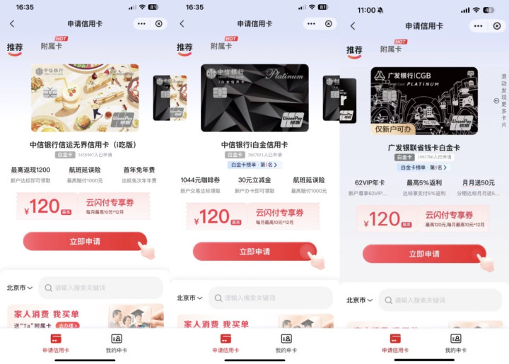 云闪付不仅仅提供申卡功能股票配资票配资论坛,从日常生活到品质出行以及各种细微的事情都帮你考虑到了,还不抓紧打开云闪付app点击申请一张心仪的信用卡么?