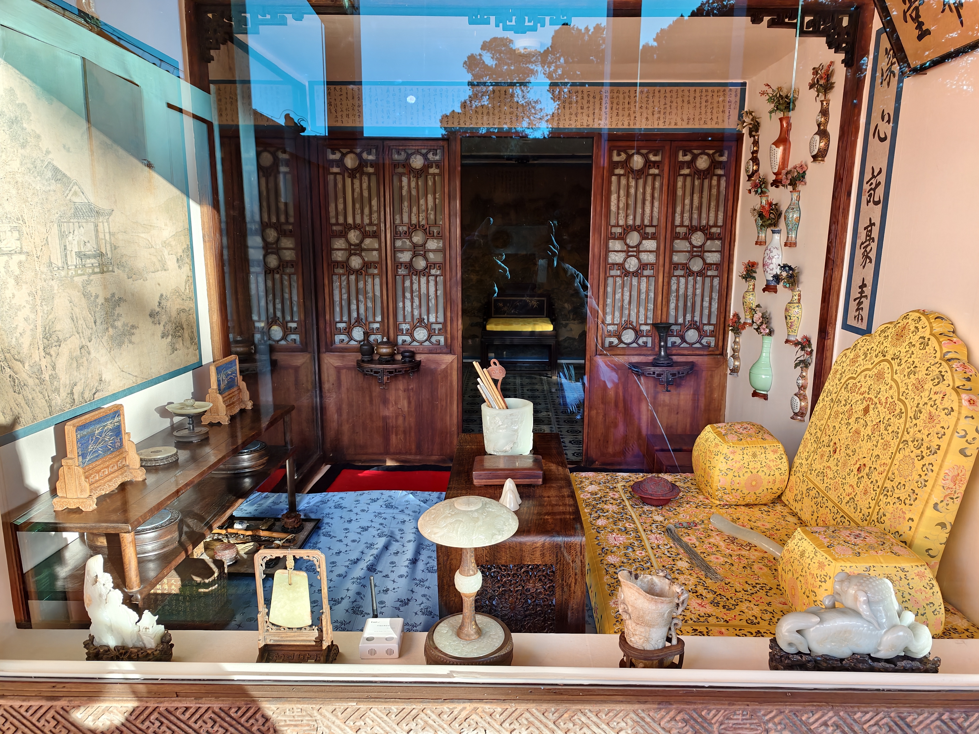 “三希堂的复原陈列尤为不易,其空间面积狭小,陈列物品繁多。”文明说,无论是瓷质壁瓶,还是宝石制成的插花,质地都十分娇脆,工作人员在布陈的过程中始终小心翼翼、细致谨慎。